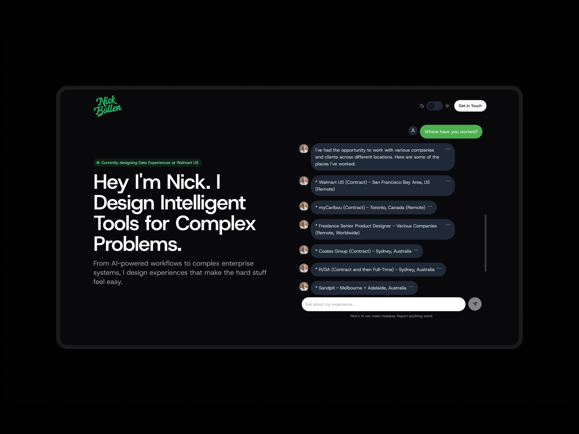 Nick's AI can make mistakes. Report anything weird.